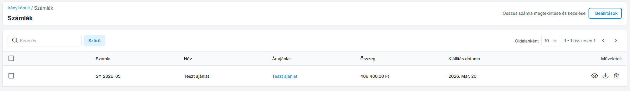 When you click the "Accept" button—provided all the information has been entered correctly—the system will generate the invoice, and the quote will be added to the Invoices list.