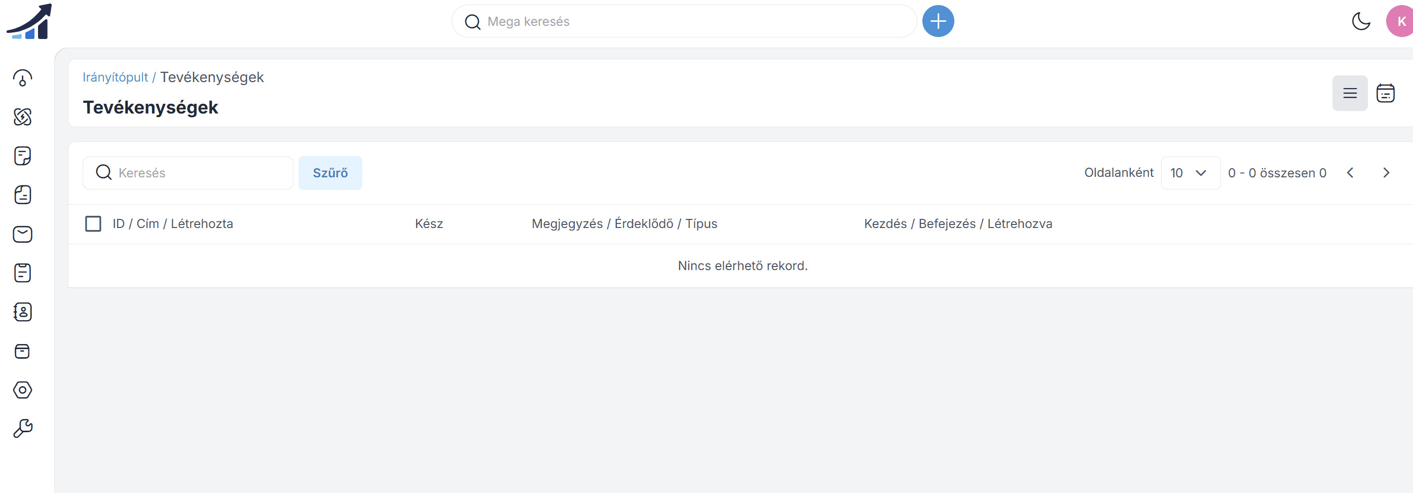 The control panel is the central interface of the DrCRM system, providing a quick overview of the company's sales and customer management processes. The dashboard displays key data such as current opportunities, leads, ongoing activities, and sales performance using various graphs and statistics.